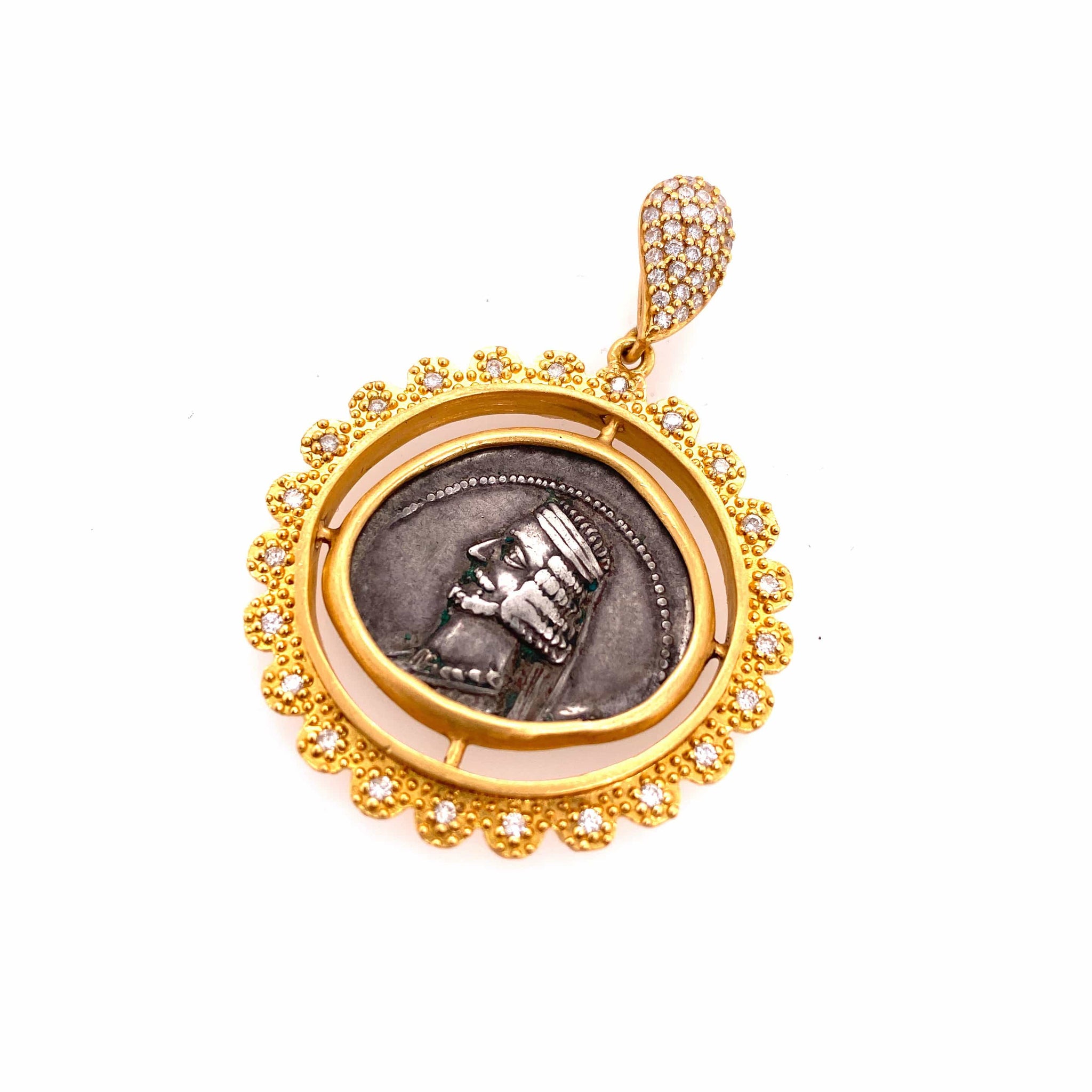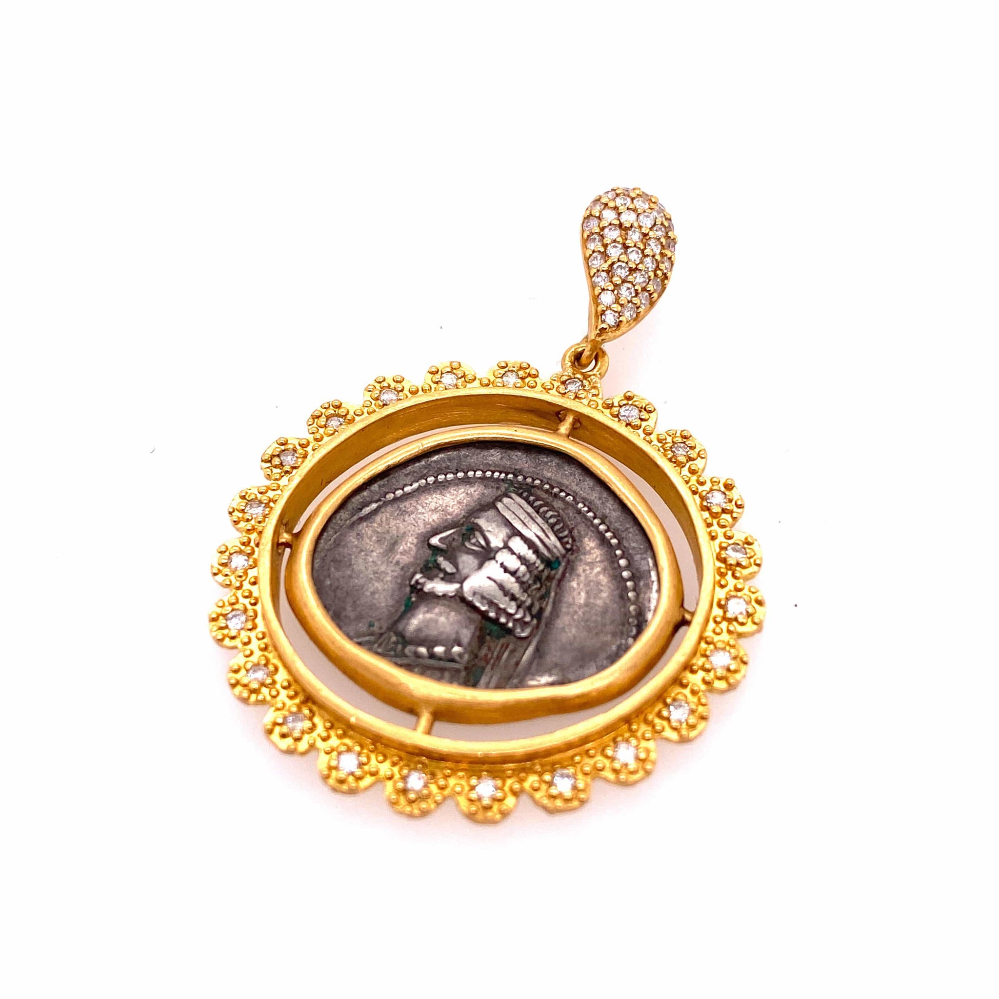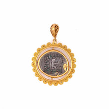 Antiquity Pendant Set in 20K Yellow Gold with Brilliant Diamonds and Coin.